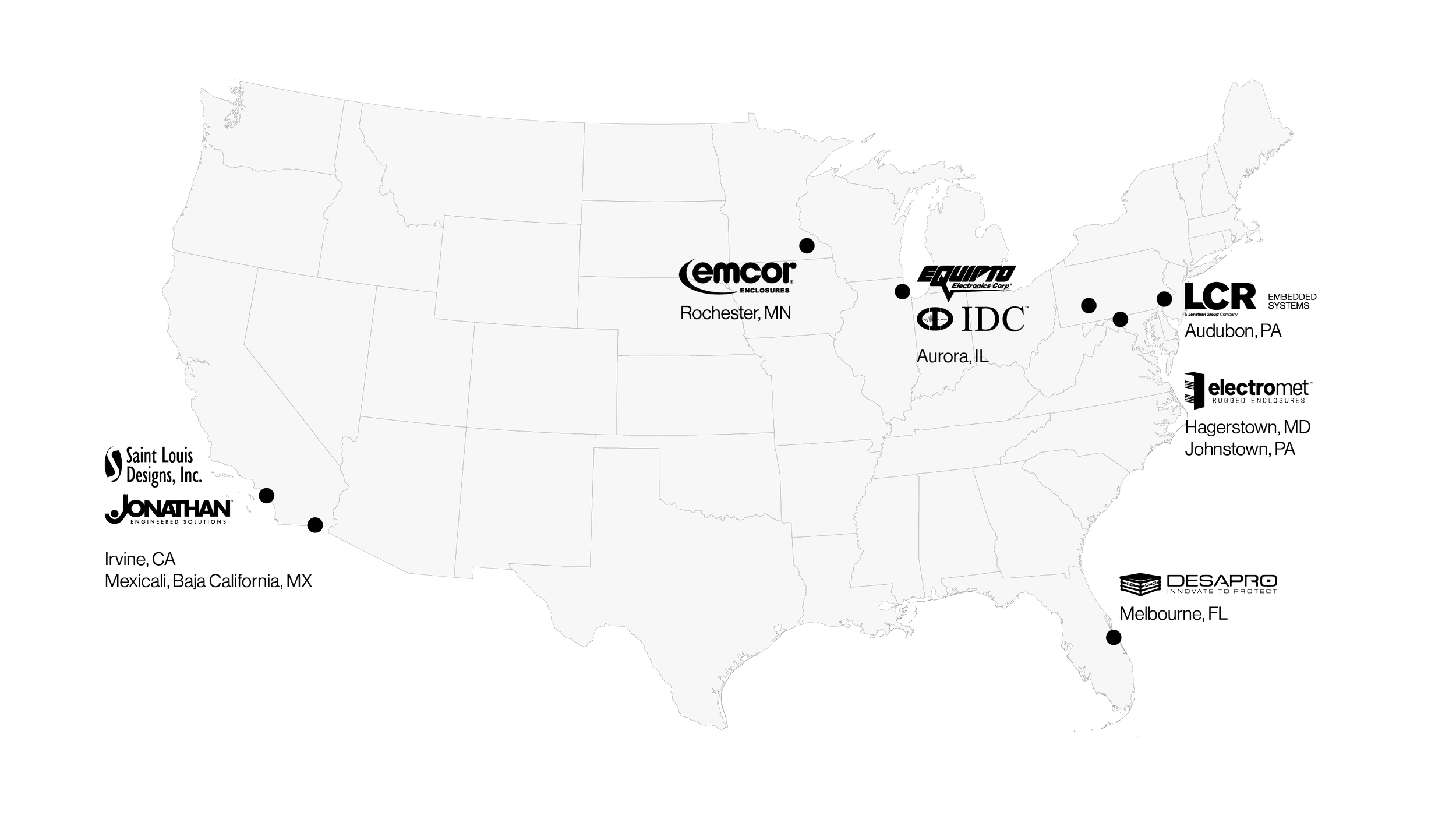 Jonathan Group operates out of 7 different facilities across the United States, utilizing each unit’s core competencies to deliver the most complete solutions available on the continent.